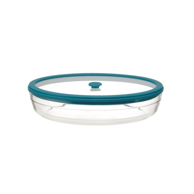 डिश उच्च बोरोसिलिकेट ग्लास से बनी है, जिसमें सिलिकॉन वाल्व के साथ एक वेंटेड ग्लास ढक्कन लगा है।