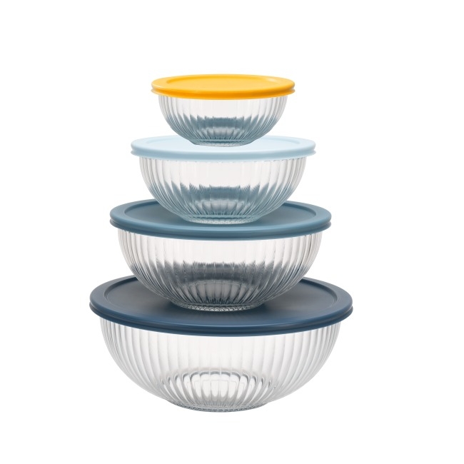 Miska do mieszania ze szkła w paski z prostą pokrywką PE