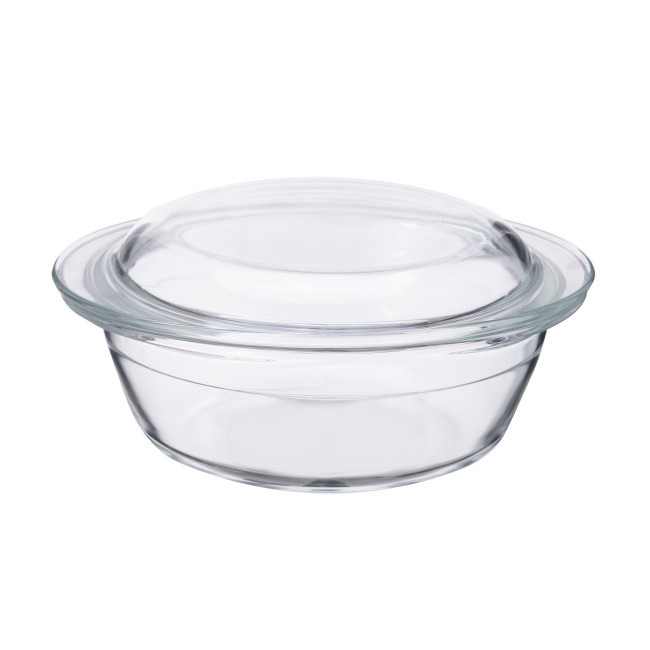 Naczynie wykonane jest z wysokiej jakości szkła borokrzemianowego, co zapewnia dobrą odporność na szok termiczny (≈ 120 °C). Pokrywa jest również szklana.