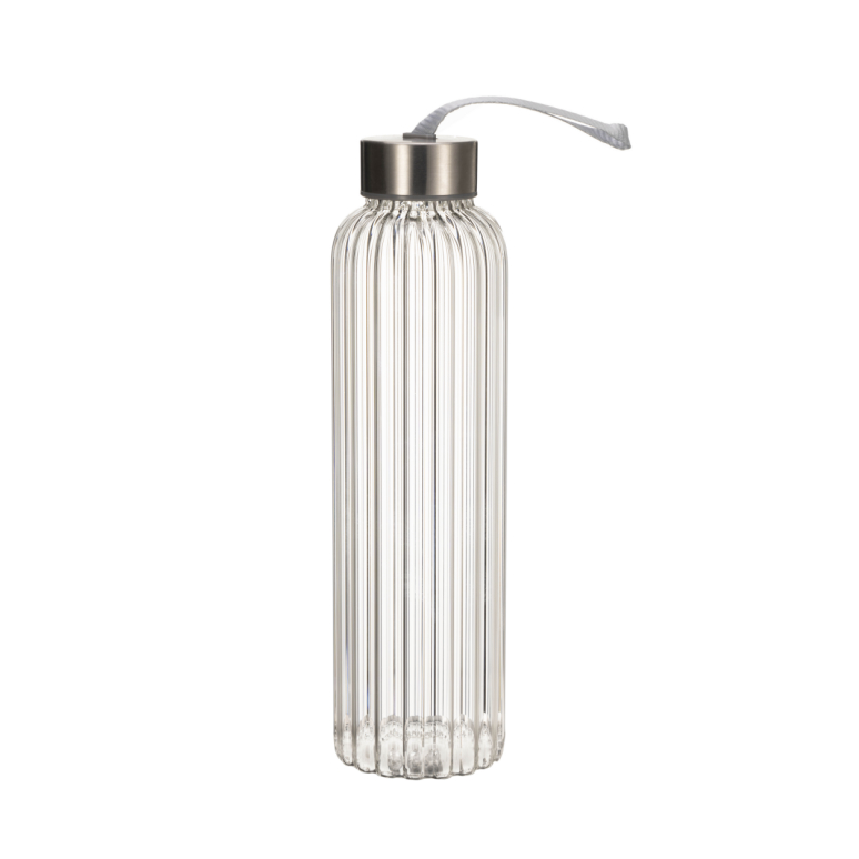 A: The bottle is made of high borosilicate glass, and the lid is available in bamboo or stainless steel.